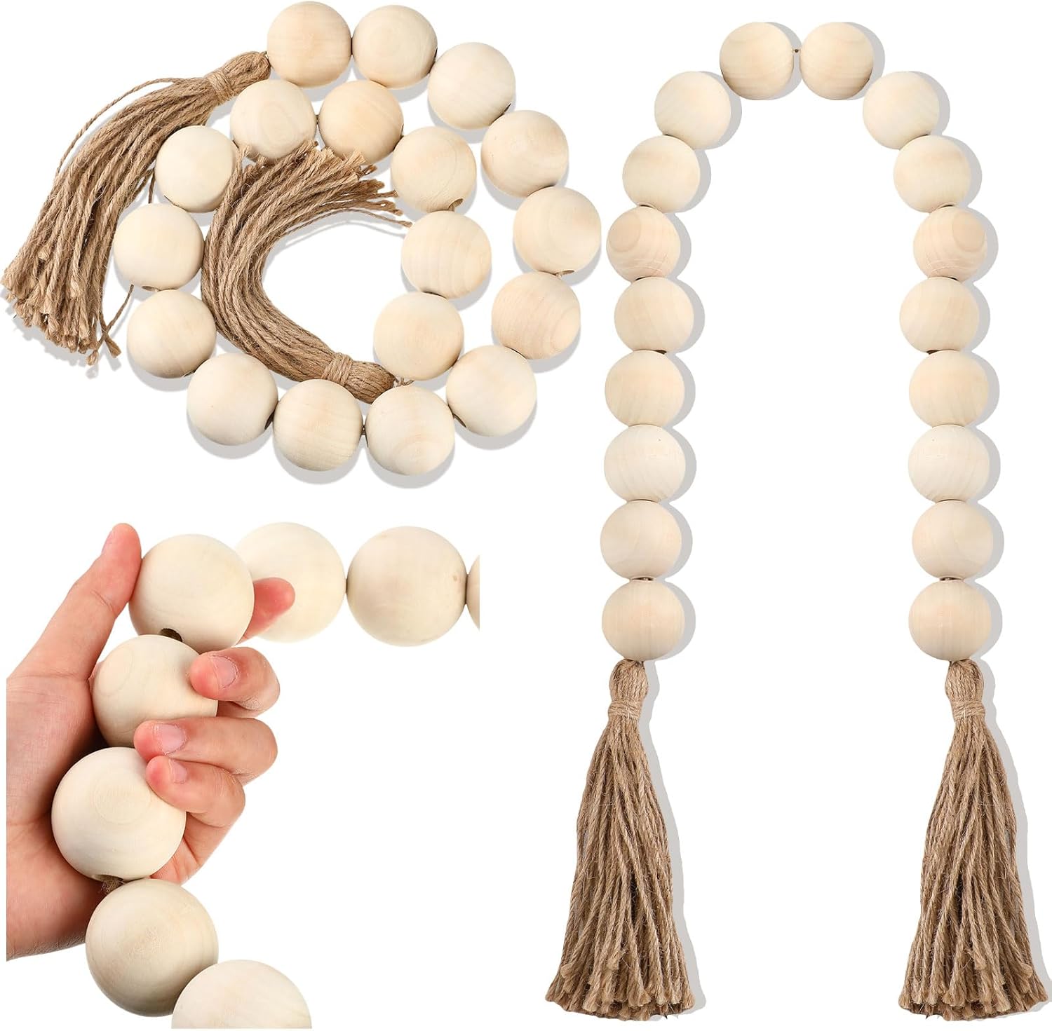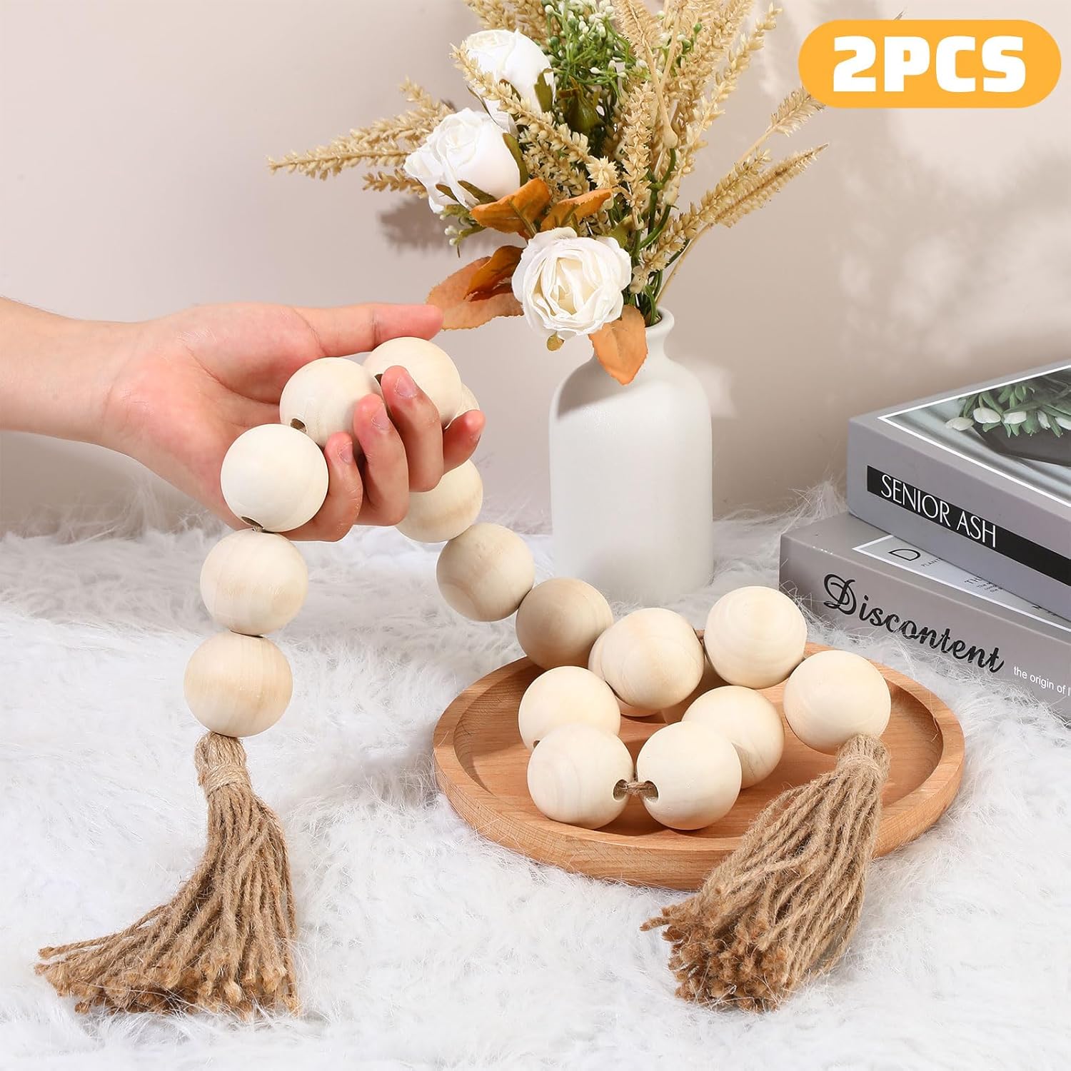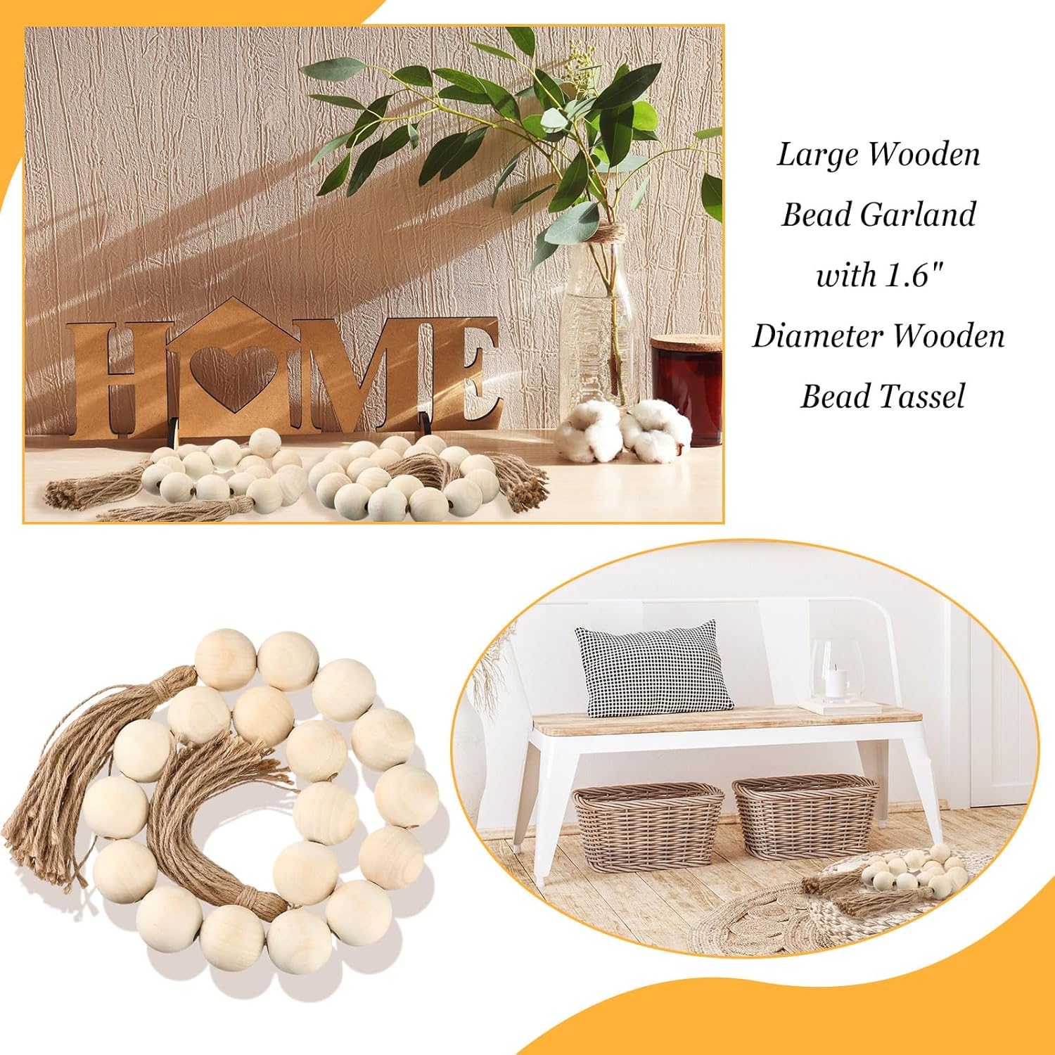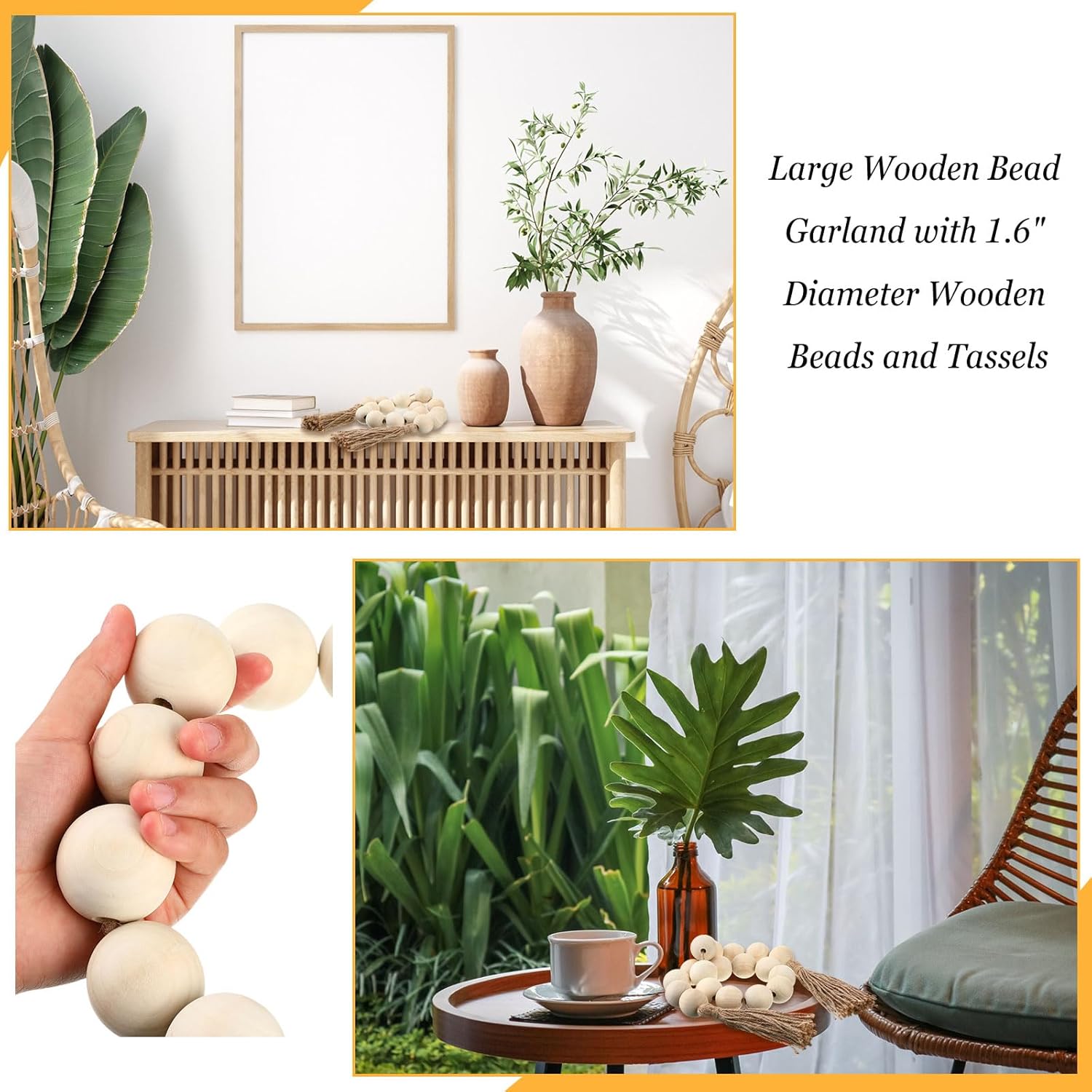 This elegant 2-piece wooden bead garland brings a warm, natural aesthetic to your home. Each oversized bead measures 1.57 inches in diameter, creating a bold visual impact thatâs perfect for adding personality to any room. The garland is 40 inches long, making it an ideal statement piece for hanging on walls, decorating tables, or displaying on shelves.