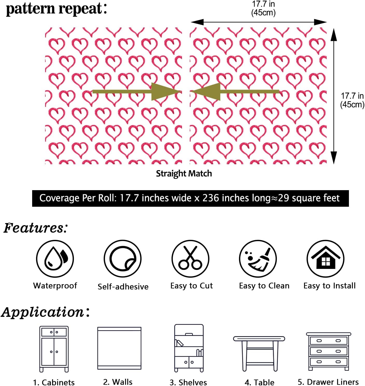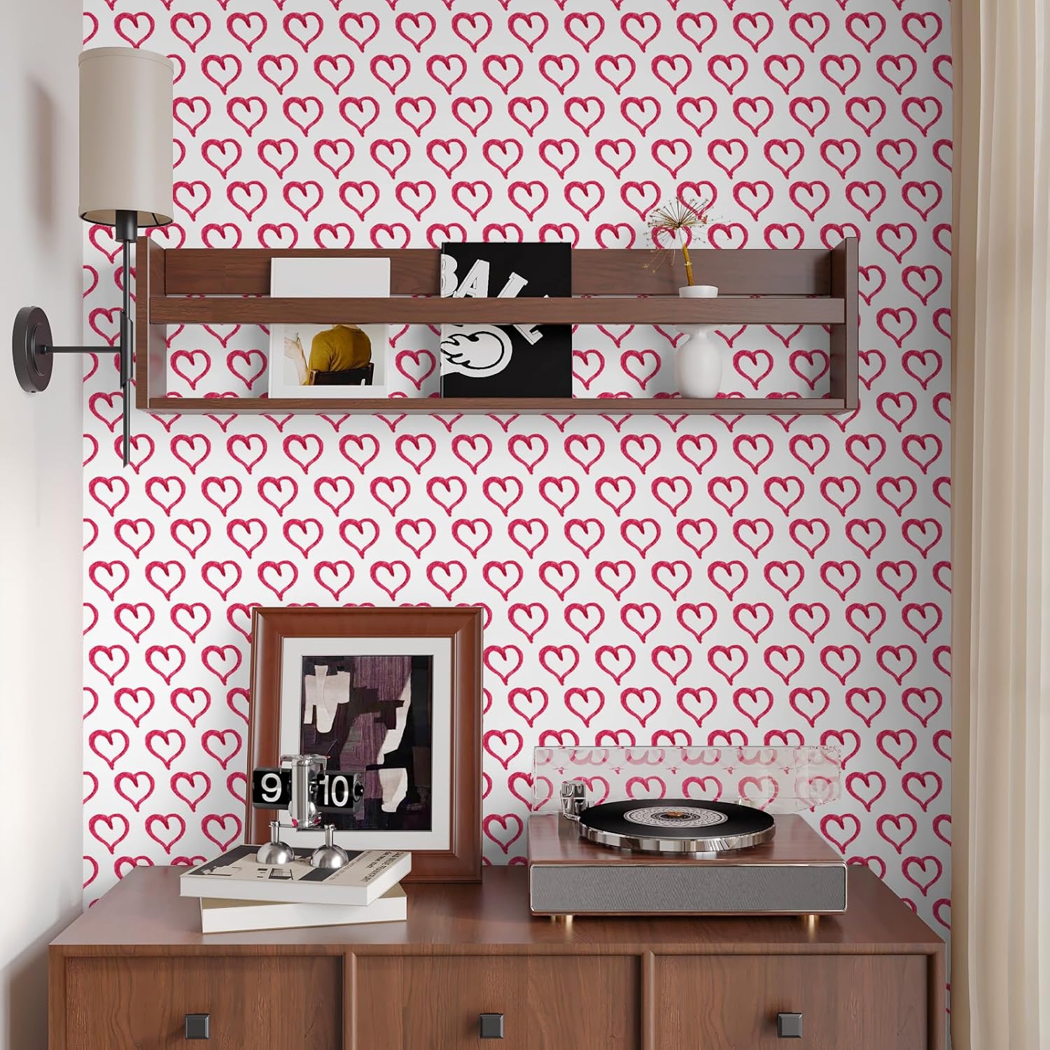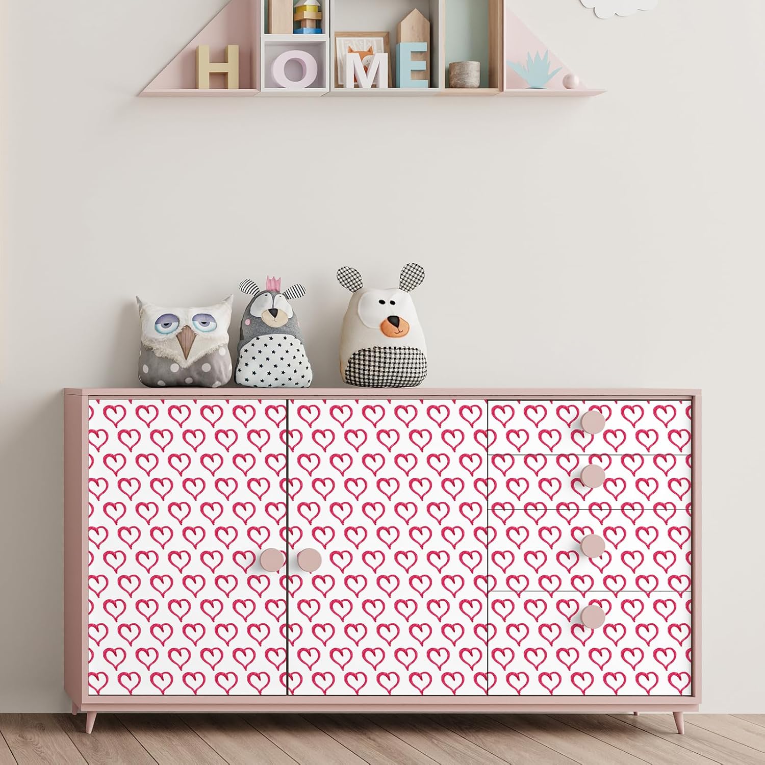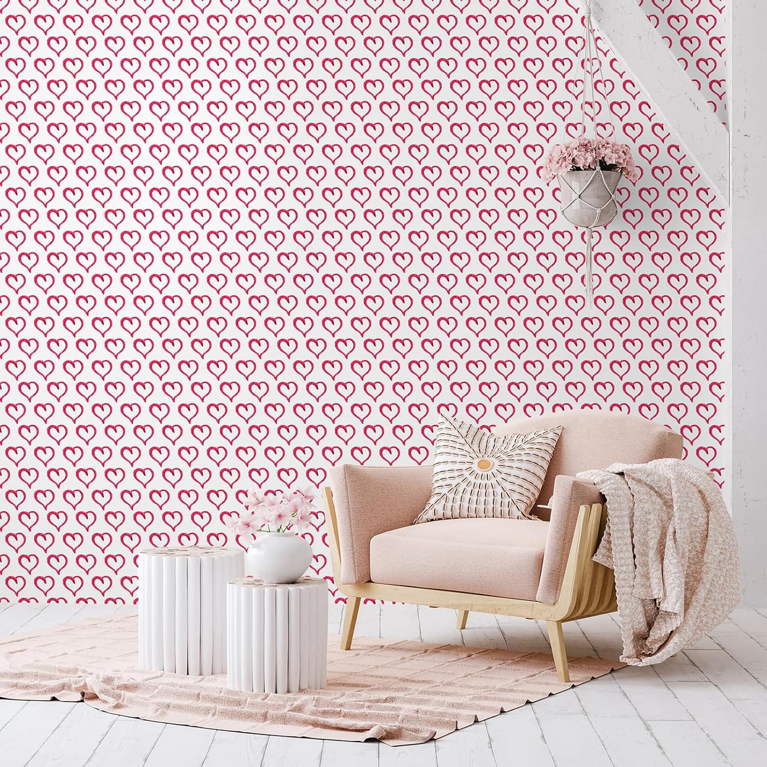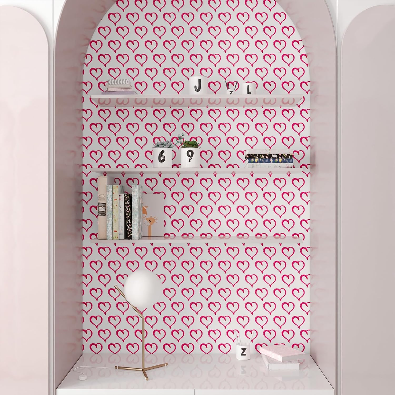 Whether you're styling a girls' room, preparing a nursery, or updating a classroom bulletin board, this heart wallpaper is a versatile and stylish solution. It works well on walls, backsplashes, and even cabinets, offering endless design possibilities.