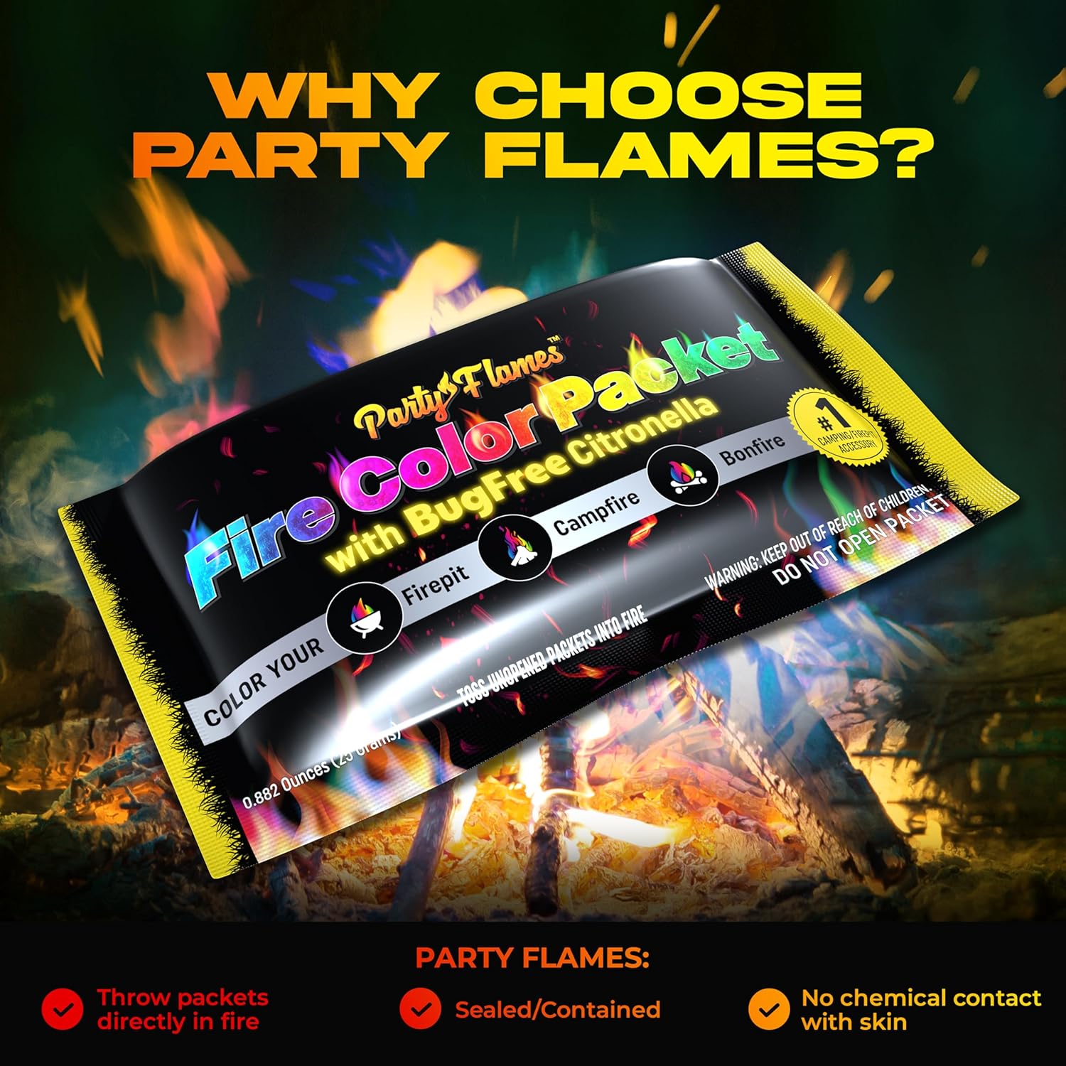 Elevate your next outdoor gathering with Party Flames Fire Color Changing Packets. These 4-pack vibrant color-changing fire packets add a dazzling rainbow effect to your flames, turning an ordinary campfire into a magical and unforgettable experience. Whether you're hosting friends, enjoying a family night, or simply unwinding by the fire, the colorful display will bring joy and wonder to everyone.
