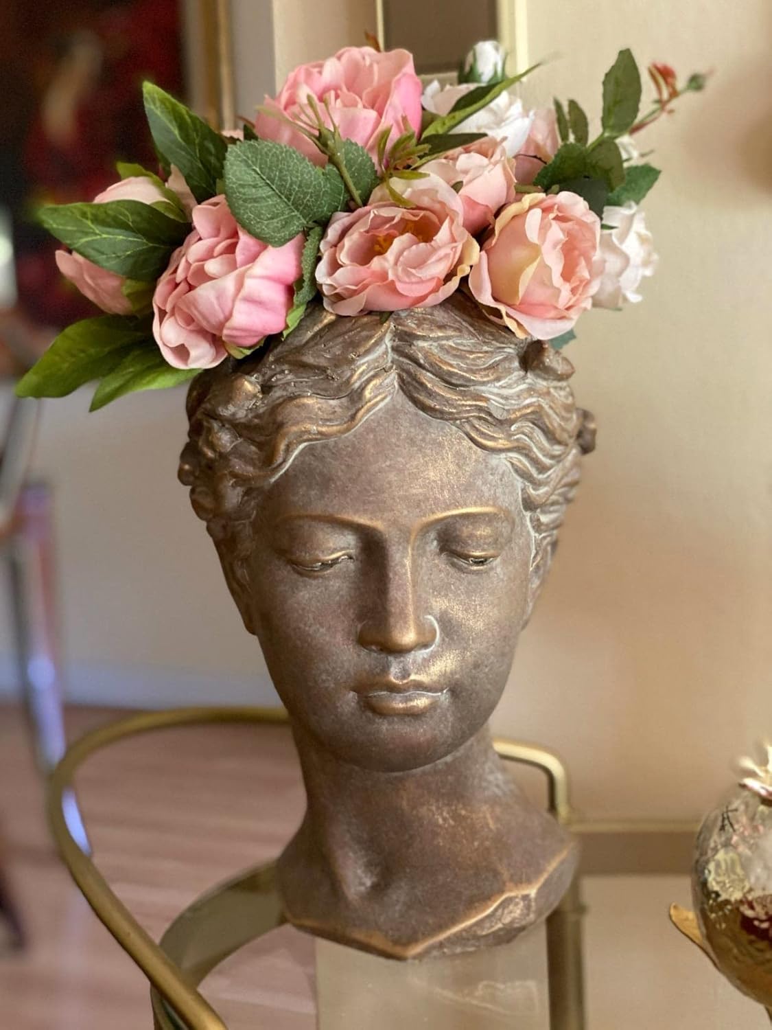 Whether you're looking to add a touch of sophistication to your living room or create an eye-catching display in your garden, this unique head planter is a must-have. Its blend of art and functionality makes it a versatile choice for those who appreciate timeless design and elegant garden accents.