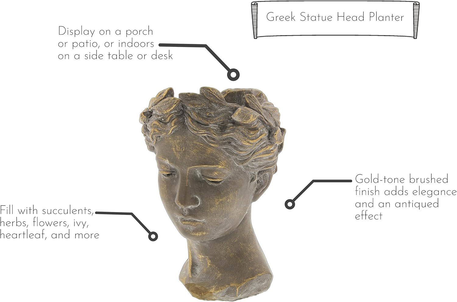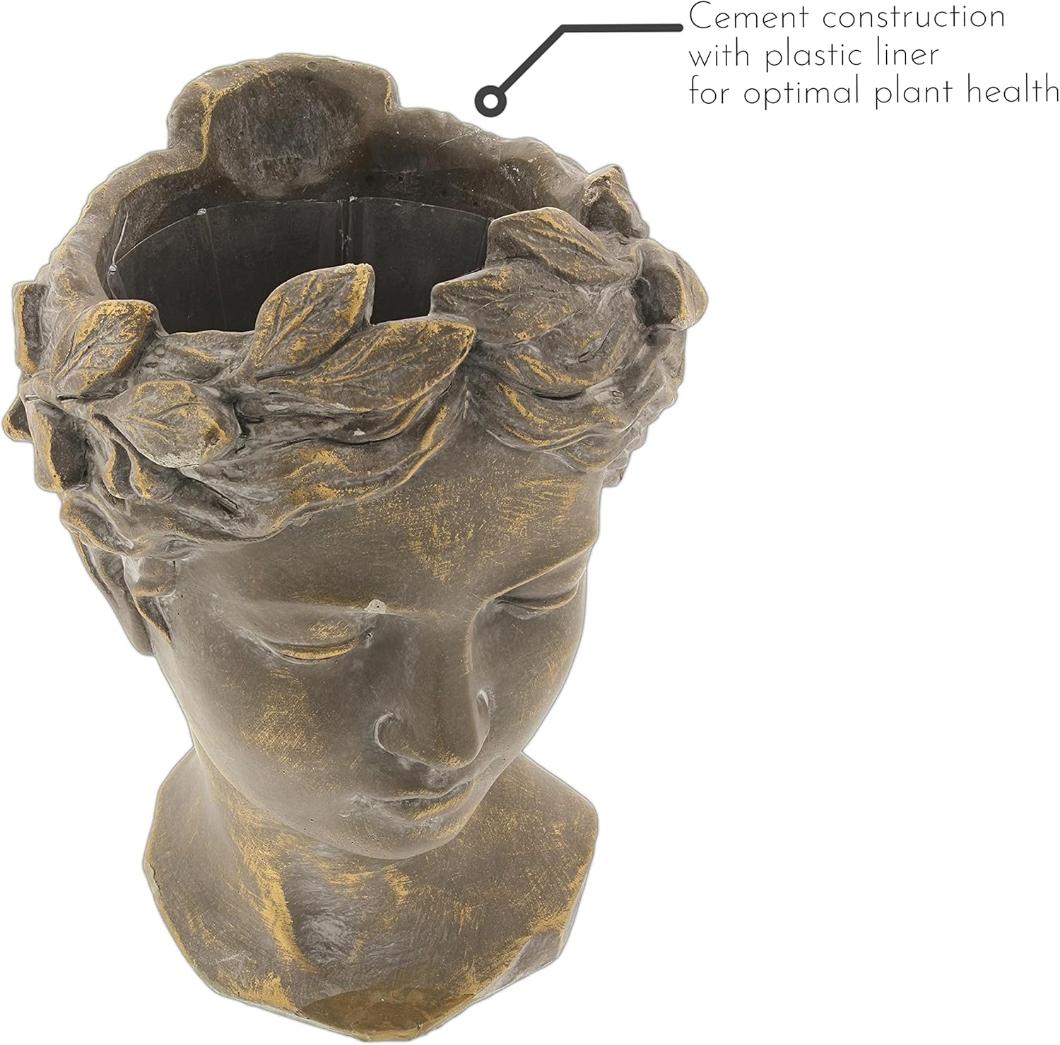 This statue head planter combines the beauty of classical art with the practicality of modern gardening. Its handcrafted cement construction and bronzed finish create a timeless, antique aesthetic that effortlessly enhances both indoor and outdoor environments. Whether placed on a shelf, side table, or in a garden arrangement, this planter adds a touch of elegance and artistry to your decor.