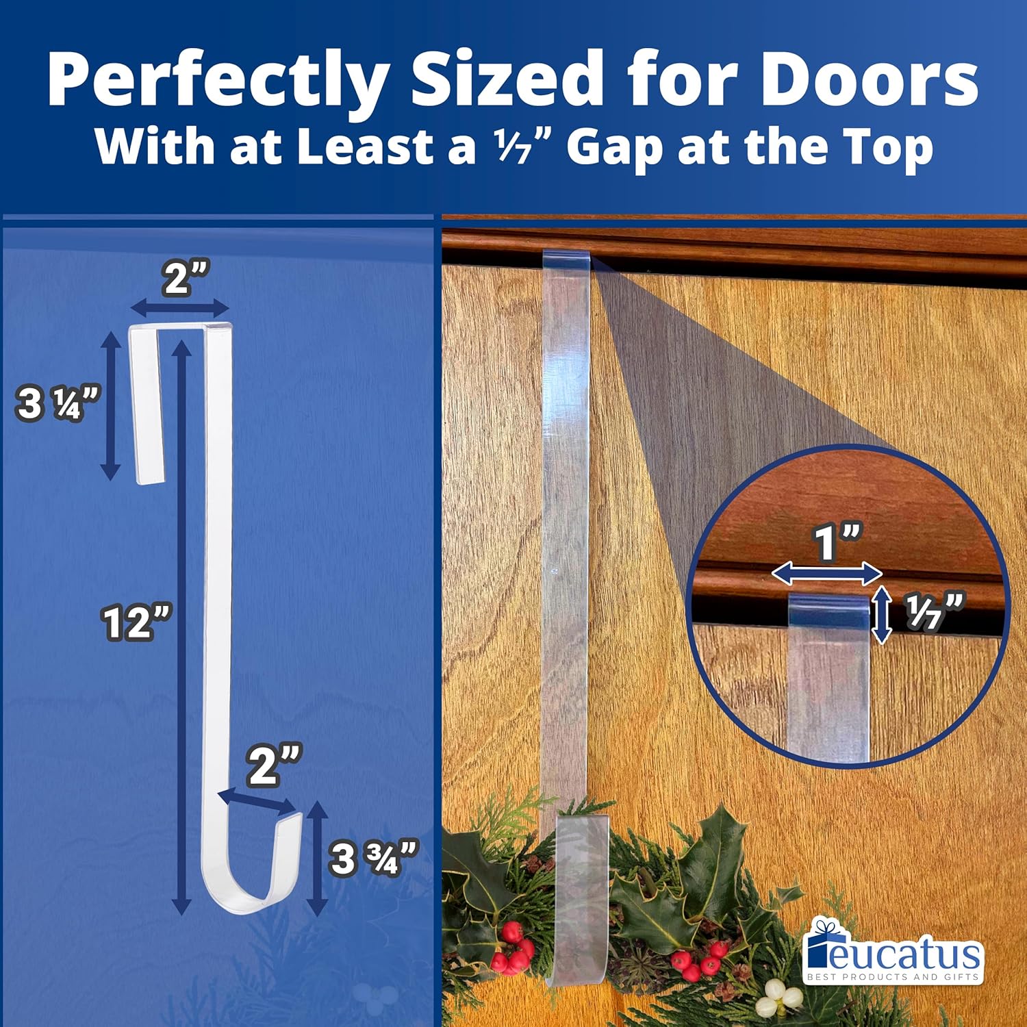 These 12-inch wreath hangers are ideal for festive occasions like fall, Halloween, and Christmas. Theyâre designed to fit doors with at least a 1/7 inch gap, making them reliable and long-lasting. With a lightweight yet sturdy construction, theyâre perfect for both indoor and outdoor use, without leaving behind any residue or stains on surfaces.