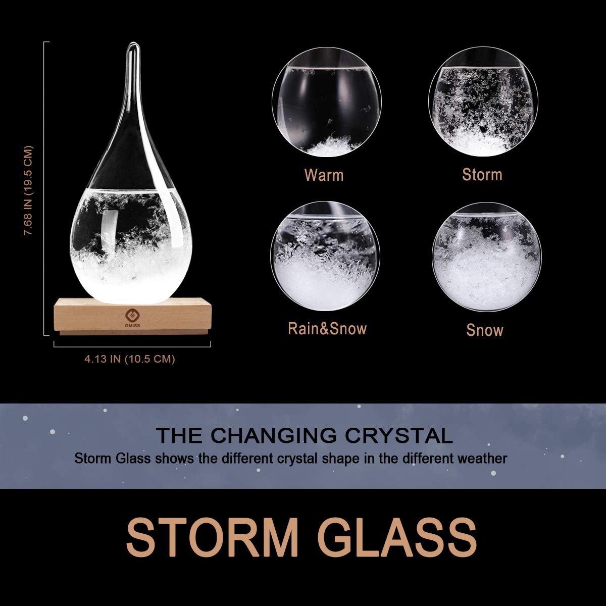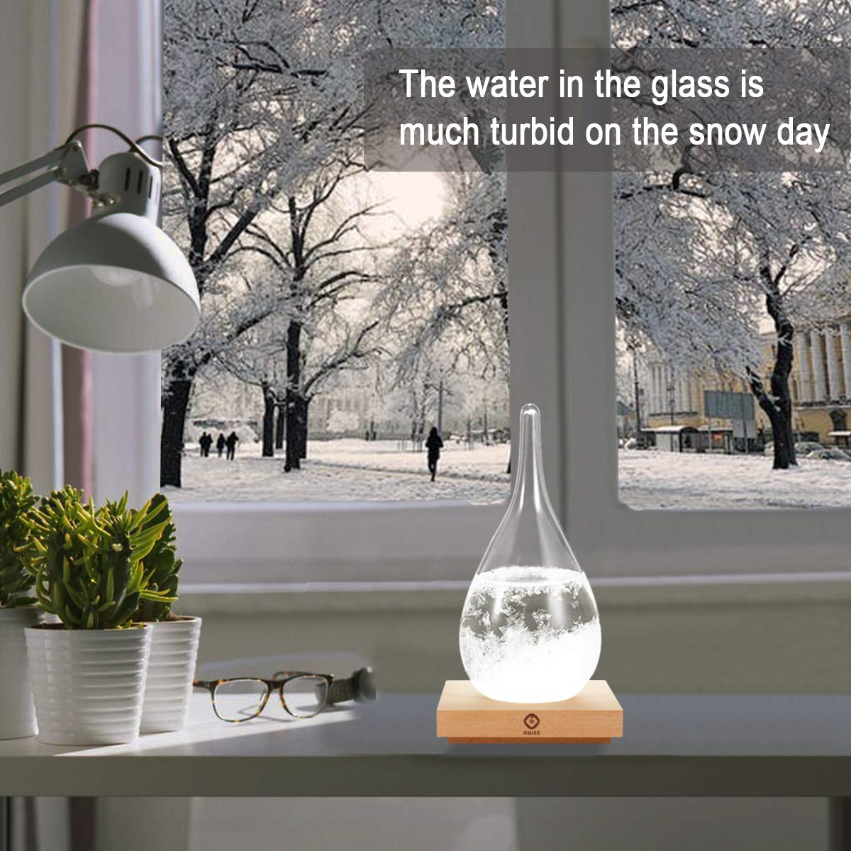 Discover the beauty of the Storm Glass weather forecast bottle, a unique and elegant way to predict the weather using shifting snowflake patterns. This stunning piece is ideal for home or office decoration and makes for a perfect gift on Christmas or Valentine's Day. Its natural wooden base and clear glass design are both functional and decorative, while the subtle changes in the glass offer a fascinating glimpse into the changing weather conditions.