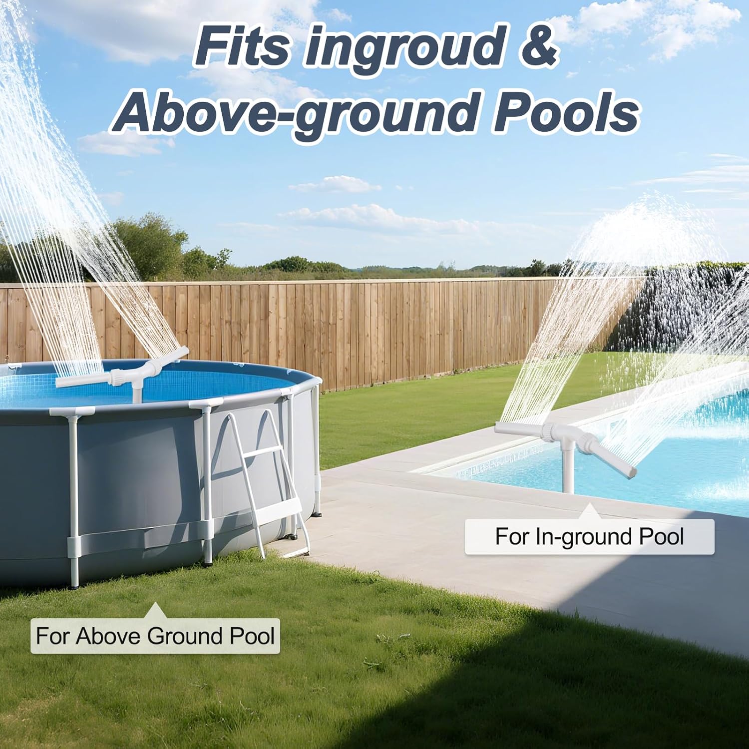 This beautiful dual-spray waterfall fountain turns your pool into a serene, refreshing retreat. With its advanced spray system, it cools the water efficiently, making each swim more enjoyable. The design promotes proper water circulation, helping to keep your pool clean and comfortable throughout the warm summer months.